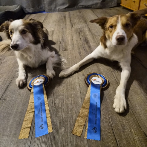 Hoopers-Turnierstart mit Rhea und Oscar. Gleich beim ersten Turnier ein voller Erfolg mit beiden Hunden.