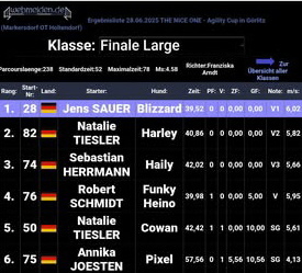Herzlichen Glückwunsch an Natalie mit LLA´s Harley. Harley hat den Agility Quadriga Cup 2025 in der Klasse 3 Large gewonnen.
