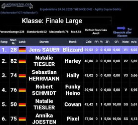 - Natalie und Harley werden Landesmeister Klasse 3 im Agility zur DVG-Meisterschaft Sachsen und qualifizieren sich für die Bundessiegerprüfung