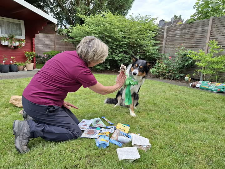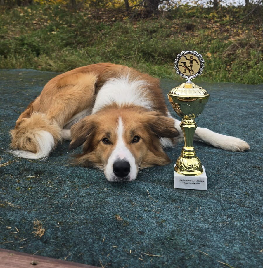 Wir gratulieren Heike mit LLA´s Sir Richard zum Bestehen der BH, zum Start in der RO Klasse 2 mit einem Ergebnis von 100 Punkten und zum Start im Treibball Klasse 2 mit 0 Fehlern und dem 3. Platz!
