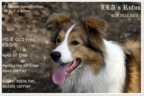 LLA´s Pauline wurde mit HD A,ED 0,OCD free, LÜW free, Spondylose free ausgewertet!